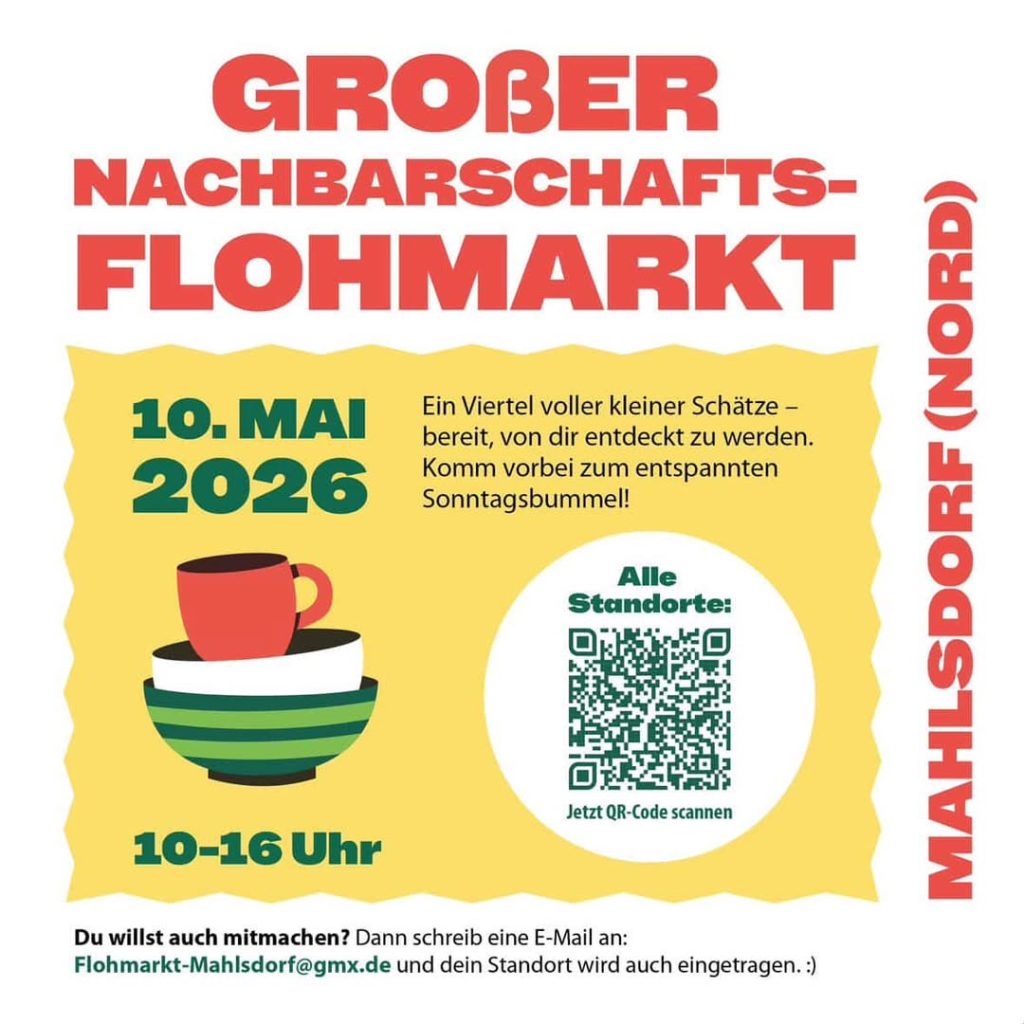 Aktuell machen bereits knapp 20 Haushalte mit – Tendenz steigend. Die Organisatoren hoffen, dass sich bis zum Veranstaltungstag noch weitere Nachbarinnen und Nachbarn anschließen. Wer Interesse hat, selbst einen Stand auf dem eigenen Grundstück anzubieten, kann sich unkompliziert per E-Mail unter Flohmarkt-Mahlsdorf@gmx.de anmelden. Mit dem Flohmarkt setzen die Initiatoren auf Gemeinschaft, Nachhaltigkeit und ein bewusst entschleunigtes Einkaufserlebnis. Und das direkt vor der eigenen Haustür.