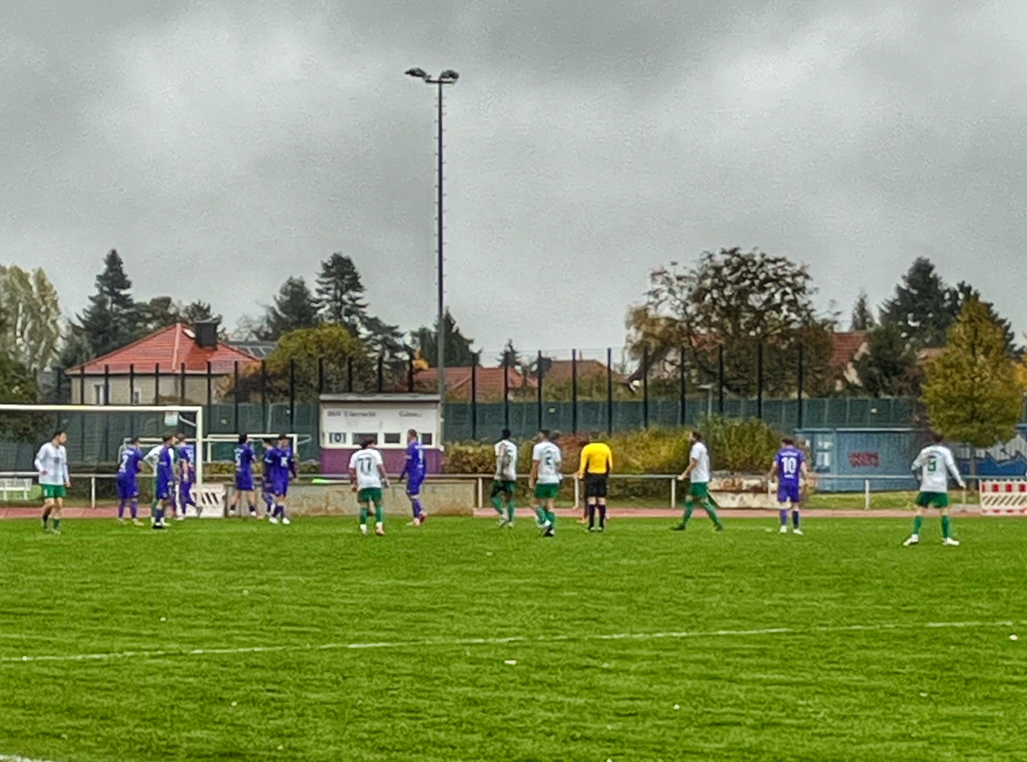 Doch von vorn: Bei fiesestem Mahlsdorfer Herbstwetter mit Dauerregen, stürmischem Wind und Temperaturen von nur 7 Grad begann das Team von Trainer Karsten Heine schwungvoll, kam mit den schwierigen äußeren Bedingungen besser zurecht. Dzenis Hot (21) scheiterte mit einem Fernschuss an Gästetorwart Ibrahim Suaid, ebenso segelten zahlreiche Mahlsdorfer Ecken in den Schweriner Strafraum, Willi Nowak probierte es mit einem Freistoß aus spitzem Winkel. Außer eines von Paul Büchel um den Pfosten gelenkten Schusses blieb Dynamo im ersten Durchgang harmlos – mit einem torlosen Remis ging es in die Pause.