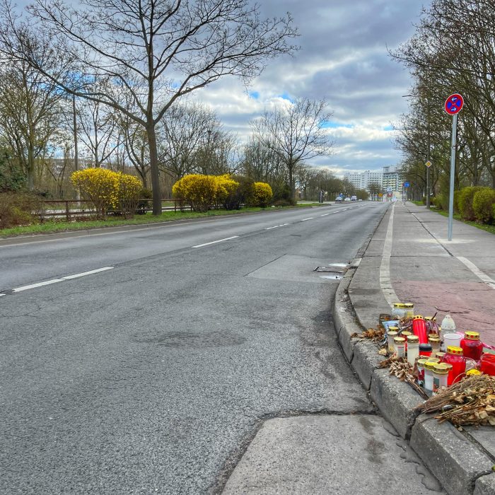 Noch immer erinnern Dutzende Grabkerzen, Gedenkzettel und verwelkte Blumen in der Hellersdorfer Straße an den tragischen Tod der Mahlsdorferin Janine.