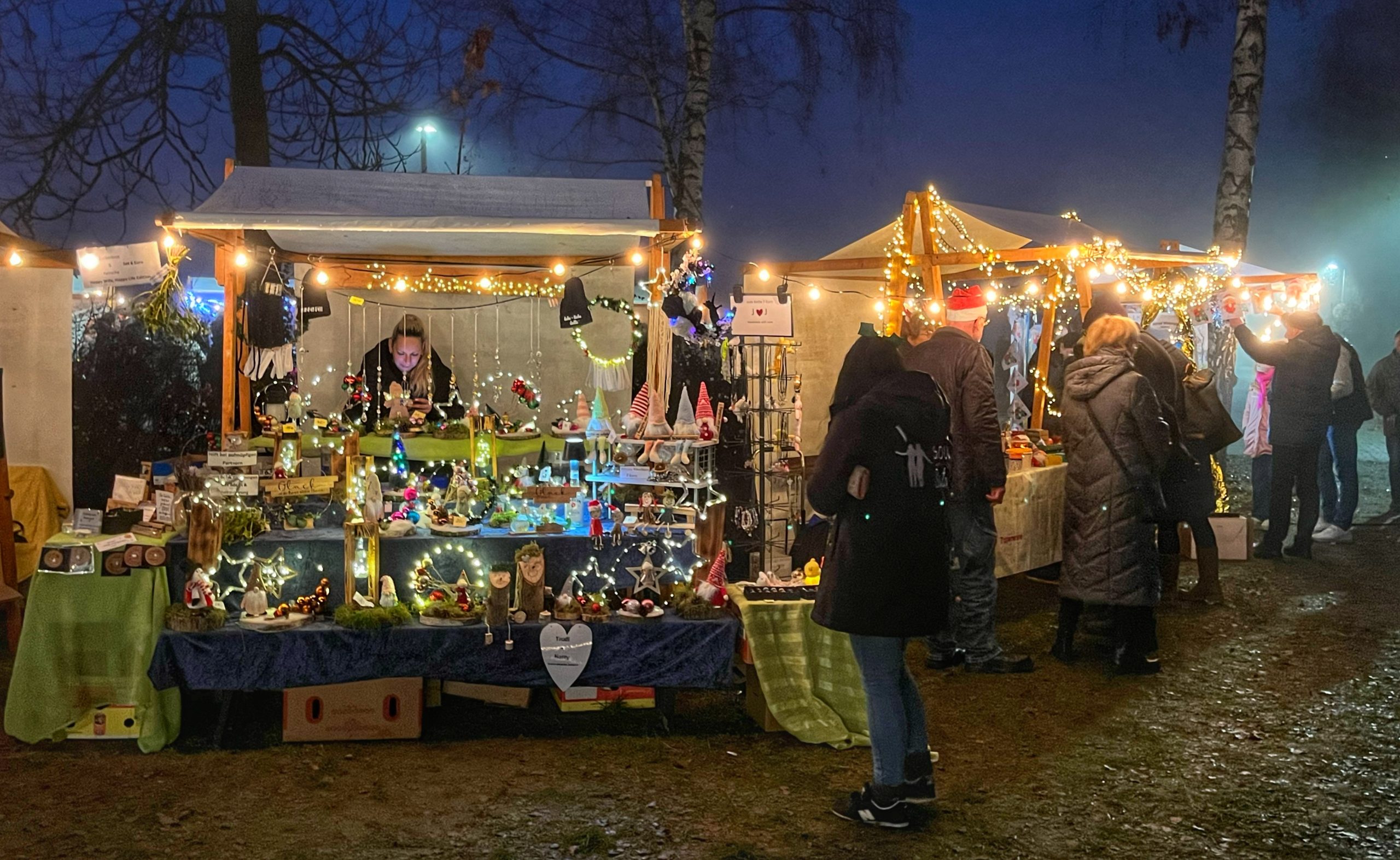 Ein feiner Nebelschleier legte sich am Samstagnachmittag über das Gelände von Eintracht Mahlsdorf und tauchte den Mahlsdorfer Weihnachtsmarkt in ein fast märchenhaftes Licht. Zwischen Lichterketten, dampfenden Bechern und festlich geschmückten Ständen strömten bis in die frühen Abendstunden hinein rund 2500 Besucherinnen und Besucher über das Vereinsgelände am Rosenhag.