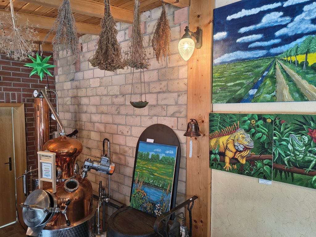 Odrichs Bilder bewegen sich zwischen Abstraktion und Andeutung, lassen Raum für Interpretation und laden den Betrachter ein, eigene Emotionen und Gedanken in die Werke hineinzulegen. Die Ausstellung auf dem Pilzhof bietet einen umfassenden Einblick in sein künstlerisches Schaffen und zeigt, wie vielseitig und ausdrucksstark seine Arbeiten sind. Die Destillerie von Dr. Schulz in Krummensee, gelegen im Werneuchener Ortsteil Krummensee, ist weit über die Region hinaus als Pilzhof bekannt. Hier treffen handwerkliche Destillationskunst, regionale Produkte und kulturelles Engagement aufeinander. Neben der Herstellung hochwertiger Spirituosen hat sich der Hof in den vergangenen Jahren zunehmend als Treffpunkt für Kunst- und Kulturinteressierte etabliert.