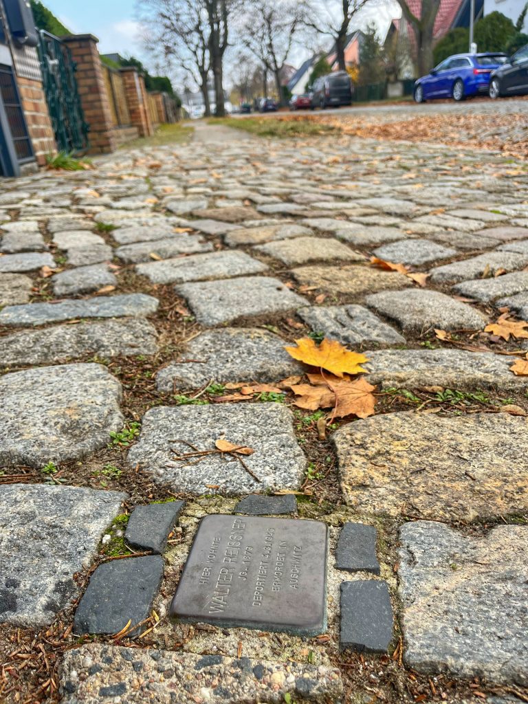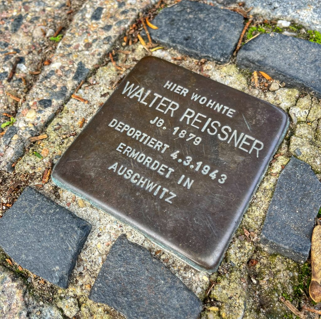 An vielen Orten in Berlin, auch in Mahlsdorf, nehmen deshalb heute Menschen Lappen und Wasser zur Hand, um die sogenannten „Stolpersteine“ zu putzen. Das Projekt „Stolpersteine“ des Künstlers Gunter Demnig erinnert an ehemalige Nachbarinnen und Nachbarn, die zwischen 1933 und 1945 von den Nationalsozialisten verfolgt und zugleich in Arbeits- oder Vernichtungslager deportiert wurden. Die wohl bekanntesten von insgesamt 20 Mahlsdorfer Stolpersteinen befinden sich für die sieben Mitglieder der Familie Guthmann (nach ihr ist der Platz zwischen Rosenhag und Kieler Straße benannt) am Friedhof in der Lemkestraße. Heute, am 9. November, an dem sich die Reichspogromnacht zum 87. Mal jährt, erinnern wir mit dem Erzählen seiner Biografie an den in Auschwitz verstorbenen Mahlsdorfer Maler Walter Reissner.