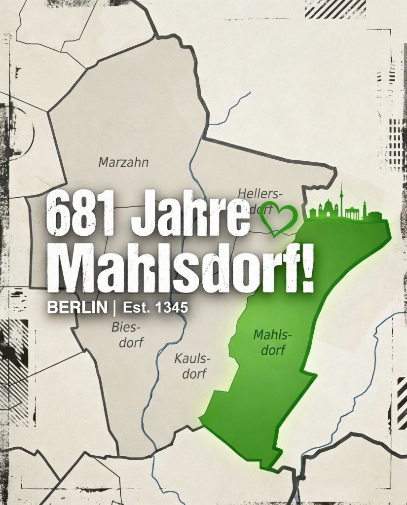 Manchmal verträumt man wichtige Geburtstage. So ist es nun uns von „Alles Mahlsdorf“ ergangen. Denn: Am vergangenen Sonntag hat Mahlsdorf einen besonderen Jahrestag begangen. 681 Jahre sind seit der ersten urkundlichen Erwähnung unseres Ortsteils im Jahr 1345 vergangen. In einer überlieferten Urkunde vom 25. Januar 1345 verkaufte Ritter Thyle Ryteling das damals „Malterstorp“ genannte Dorf samt allen Rechten und Pflichten an Ritter Otto von Kethelitz. Dieser Handel wurde im Lehnsbrief des brandenburgischen Markgrafen Ludwig des Älteren bestätigt – und markiert somit den offiziellen Beginn der schriftlich belegten Geschichte Mahlsdorfs.
