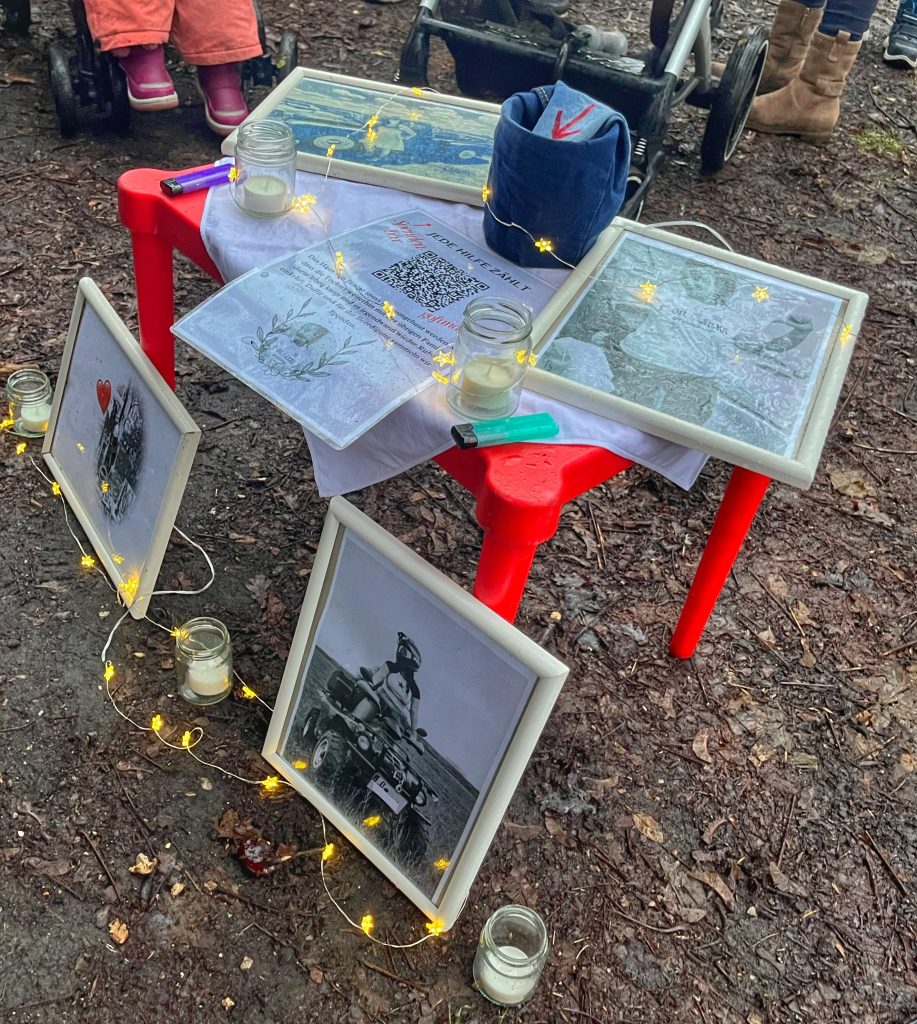 Die Andacht fand an einem Ort statt, der für Viele eine besondere Bedeutung hatte: genau dort, wo Janine bei Floh- und Weihnachtsmärkten regelmäßig ihren Stand mit selbstgefertigter Holzkunst aufgebaut hatte – Standnummer 4. An diesem so vertrauten Pflaster des Platzes wurde nun innegehalten. Der Ort, an dem sie sonst mit lautem Lachen und Charme ihre Arbeiten präsentierte, wurde für diesen Nachmittag zu einem Platz der Erinnerung.