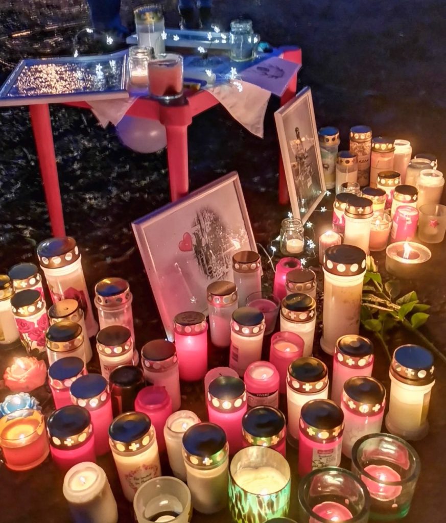 Ein besonders bewegender Moment folgte, als Janines Tochter nach vorn trat und eine Kerze entzündete. Still reichte sie das Licht an die neben ihr stehenden Menschen weiter. Von Hand zu Hand wanderte die Flamme durch die Menge. Ein sichtbares Zeichen der Verbundenheit. Das Licht wurde von Teilnehmer zu Teilnehmer weitergegeben, bis zahlreiche Kerzen den verregneten Nachmittag erhellten.