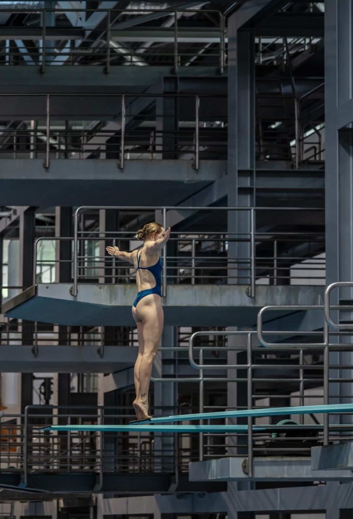 Bis es soweit ist, sportlich wie beruflich, findet Hubert immer wieder den Weg nach Hause. Aufgewachsen in der Lübzer Straße, besuchte sie die Mahlsdorfer Grundschule und pflegt bis heute enge Bindungen zu ihrer Heimat. Ein Spaziergang mit der Familie und dem Hund durch ihre alte Nachbarschaft ist für sie ein Stück Heimatgefühl und motivierende Erinnerung zugleich. Übrigens: Sportlich ist sie nicht nur allein erfolgreich. Seit 2020 springt sie regelmäßig zusammen mit Johanna Kraus, einer engen Freundin und Teamkollegin, mit der sie schon internationale Erfolge gefeiert hat und zu der sie nicht nur im Wasserbecken eine enge Verbindung hat. Jedoch gibt es auch eine Kehrseite hinter hinter all dem (berechtigten) Glanz. Trotz ihrer Erfolge hat Lotti Hubert bislang keine großen Sponsoren an ihrer Seite und finanziert Studium wie Sport größtenteils selbst. „Wasserspringen steht leider medial nicht im Fokus, ist eine Randsportart.“ Das soll sich ändern, je näher sie ihrem großen Ziel „Olympia“ kommt. Mit ihrem Fleiß, Ehrgeiz und einem klaren Karriereplan blickt sie nicht nur auf sportliche Titel, sondern auch auf eine Zukunft abseits des Wassers – als Expertin für die Abgründe der menschlichen Psyche.