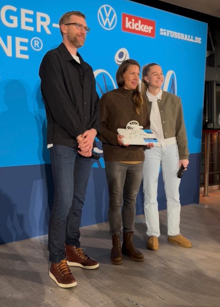 Ein Fußballweg, der bereits früh begann. Mit sechs Jahren schnürte sie erstmals die Schuhe, die gebürtige Köpenickerin durchlief beim 1. FC Union Berlin die komplette Jugend bis hin zur Damenmannschaft. Später wechselte sie als Profi-Kickerin in die Bundesliga zum FSV Frankfurt, spielte beim 1. FFC Frankfurt und beim 1.FC Saarbrücken. Sie lebte sogar einige Jahre vollständig vom Profifußball. Eine Erfahrung, die sie heute besonders zu schätzen weiß. „Von seinem Hobby leben zu können, ist ein Privileg“, selbst wenn die Gehälter noch astronomisch weit weg vom Männerfußball waren (und sind) und der Bekanntheitsgrad der meisten Spielerinnen nicht an ihre männlichen Kollegen heranreicht. Für Sarah Schatton bedeutete der Abend in Leipzig deshalb weit mehr als nur eine Trophäe. „Diese ganzen großen Stars, die man sonst nur aus dem Fernsehen kennt, kennenzulernen oder einfach aus der Nähe zu sehen – das war eine ganz besondere Ehre“, erzählt sie sichtlich bewegt.