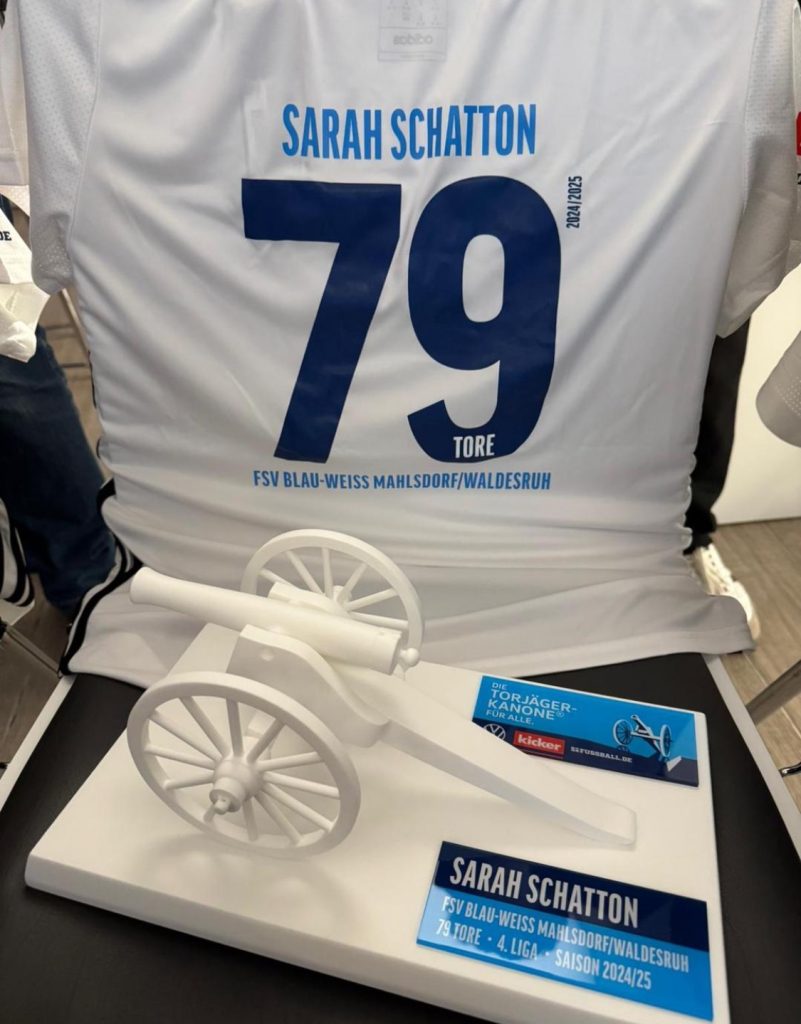Die Auszeichnung ist eine gemeinsame Initiative des Portals Fußball.de, des Fußballmagazins „Kicker“ und Autobauer Volkswagen, die jedes Jahr herausragende Leistungen im Amateurfußball würdigt. Und herausragend ist das, was Sarah Schatton geleistet hat, ohne jeden Zweifel. 79 Tore in 13 Spielen erzielte sie in einer Saison für die Geschichtsbücher. In der vergangenen Spielzeit traf die 37-Jährige in der Frauen-Kleinfeldmeisterschaft der 4. Liga, der höchsten Liga in diesem Bereich – im Schnitt sechs Treffer pro Partie. Eine Torquote, die ihresgleichen sucht und die entscheidend zum Gewinn der Berliner Meisterschaft von Blau-Weiß Mahlsdorf/Waldesruh trug.
