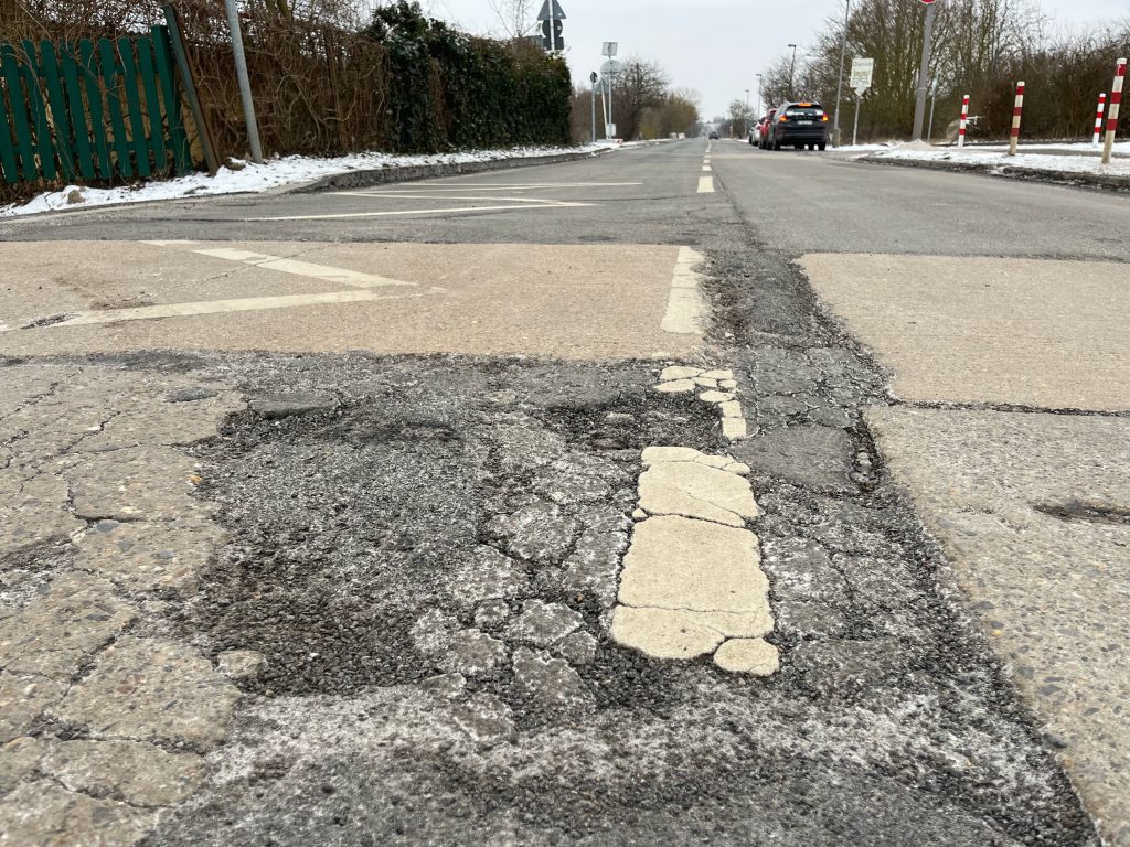 Die Straßenbeläge bestehen zwar aus robustem Asphalt, sind aber keineswegs unverwundbar. Schon kleinste Risse, die durch Verkehrslast oder Materialermüdung entstehen, können im Winter zur Schwachstelle werden. Dringt Wasser in diese feinen Risse ein und sinken die Temperaturen unter den Gefrierpunkt, beginnt ein zerstörerischer Prozess: Das Wasser gefriert, dehnt sich aus und vergrößert die Risse im Asphalt. Problematisch wird es vor allem bei häufigen Wechseln zwischen Frost und leichtem Tauwetter, wie sie Anfang Januar in Mahlsdorf zu beobachten waren. Tagsüber taute das Eis, Wasser sickerte erneut in den Straßenbelag, nachts gefror es wieder. Dieser ständige Wechsel wirkte wie ein Keil im Asphalt – Schicht für Schicht wurd das Material aufgesprengt.