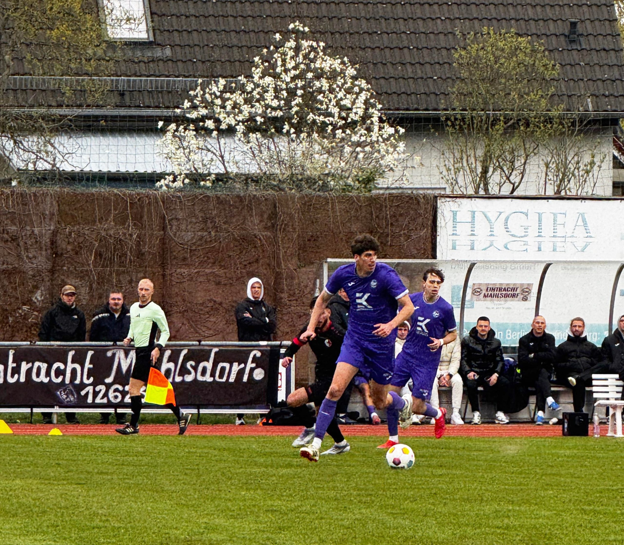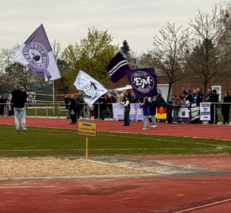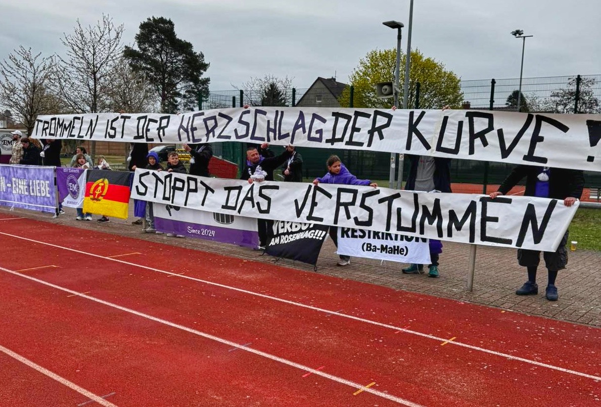 Nach zwei Niederlagen in Serie und dem Ärger um die kurzfristig abgesagte Partie am Karfreitag beim Union Klosterfelde stand die Mannschaft von Trainer Karsten Heine spürbar unter Druck. Die Anfangsphase spiegelte die Gemengelage wider: Mahlsdorf wirkte nervös, fahrig, suchte zunächst vergeblich nach Struktur. Die sonst unüberhörbare Unterstützung von den Rängen blieb zudem aus. Die aktive Fanszene, die „Supporters Mahlsdorf“, verzichtete bewusst auf Gesänge und setzte stattdessen mit Bannern und Plakaten ein Zeichen gegen das vom Bezirksamt verhängte Trommelverbot – ausgelöst durch Beschwerden von Anwohnenden rund um den Rosenhag (wir berichteten). So entwickelte sich eine ungewohnt stille erste Halbzeit, in der der Protest das Bild auf den Rängen prägte.