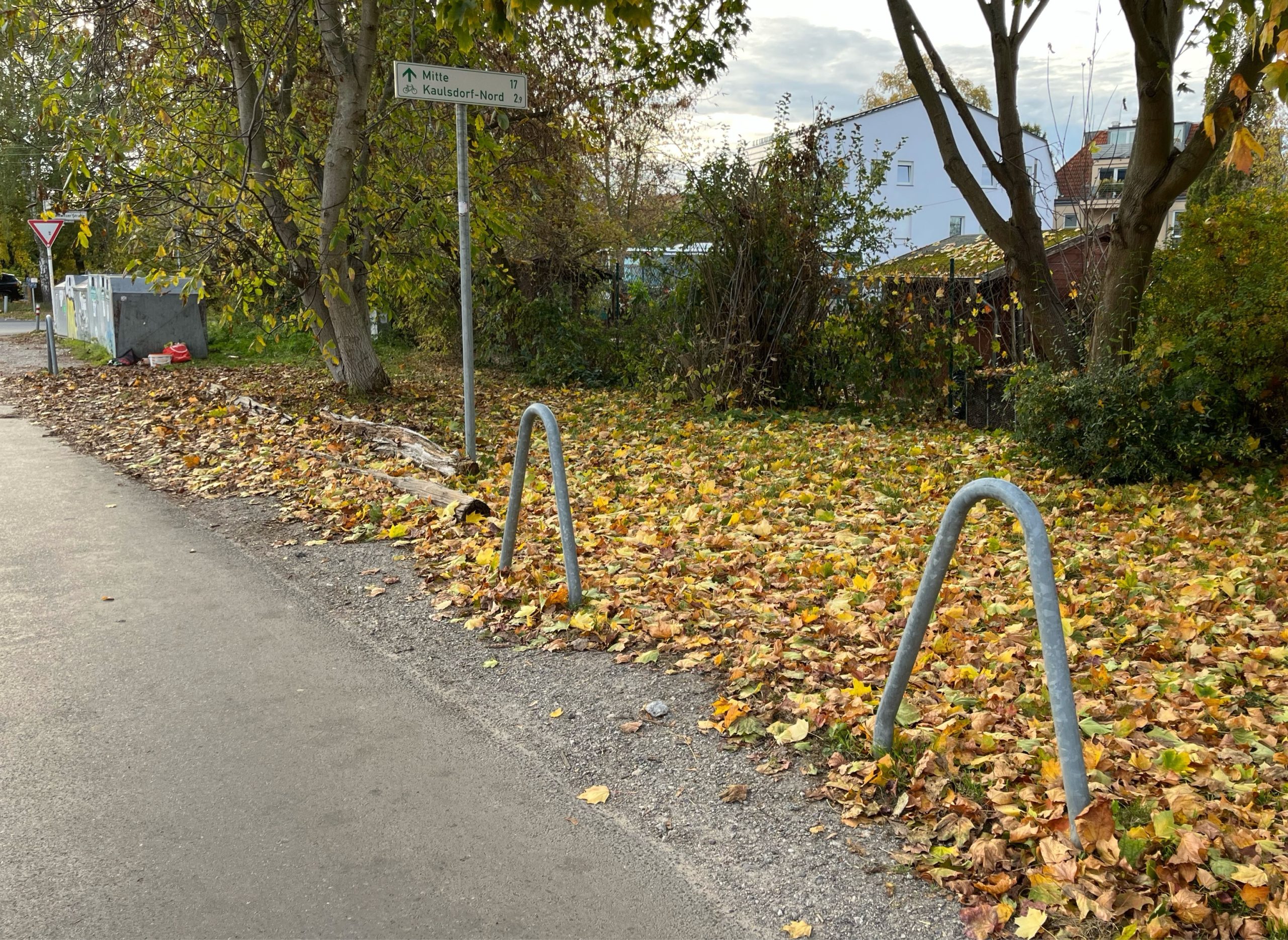 In Mahlsdorf wurden kürzlich circa zwei Dutzend sogenannte Stahlbügel in V-Form entlang des Griebenwegs installiert. Anlass war insbesondere der massiv wahrnehmbare Parkdruck durch Besucherinnen und Besucher einer angrenzenden Kleingartenanlage. Die Kosten belaufen sich auf einen niedrigen vierstelligen Betrag.